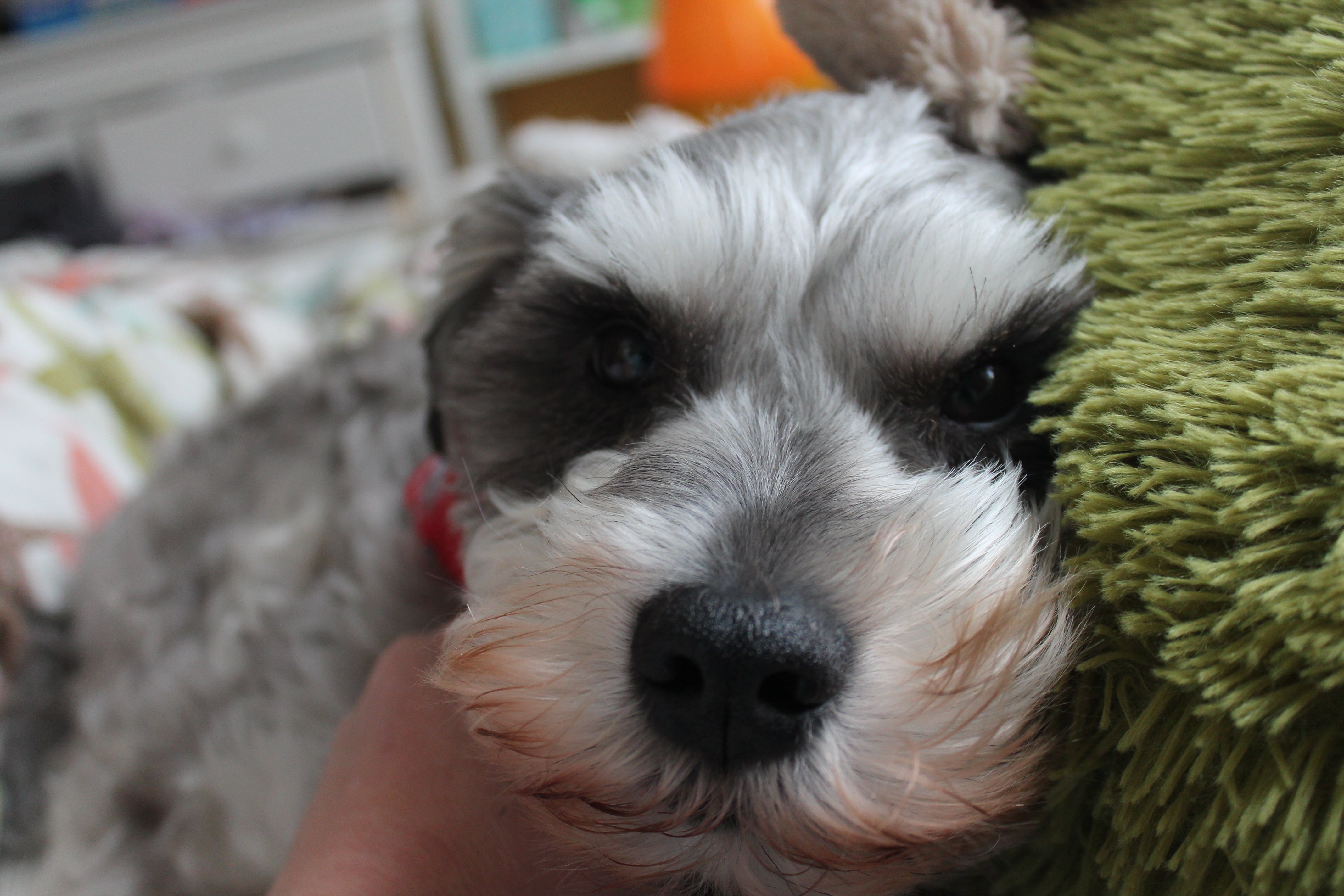 When the family came into the house there was a litter of brown schnauzer puppies who were not ready to go to their forever homes yet. The woman explained that there was one salt n’ pepper from a previous litter that hadn’t found a home yet and was ready to go. She brought him out. He was me. She brought out my parents and my dog mom Shirley immediately jumped into mom’s dad’s lap and made herself at comfortable. Fonz did a round of sniffing and settled by the kids in his family. Mom, Lindsay, Moe and Mom’s dad discussed the options. Choose one of the younger pups or take the left over from the last litter. Mom was tired. They had spent the whole day looking for puppies. She wanted something to show for it. (She was young). She choose the leftover so she could take me home that night. Although she didn’t make the decisions for the right reasons, she definitely made the right choice.