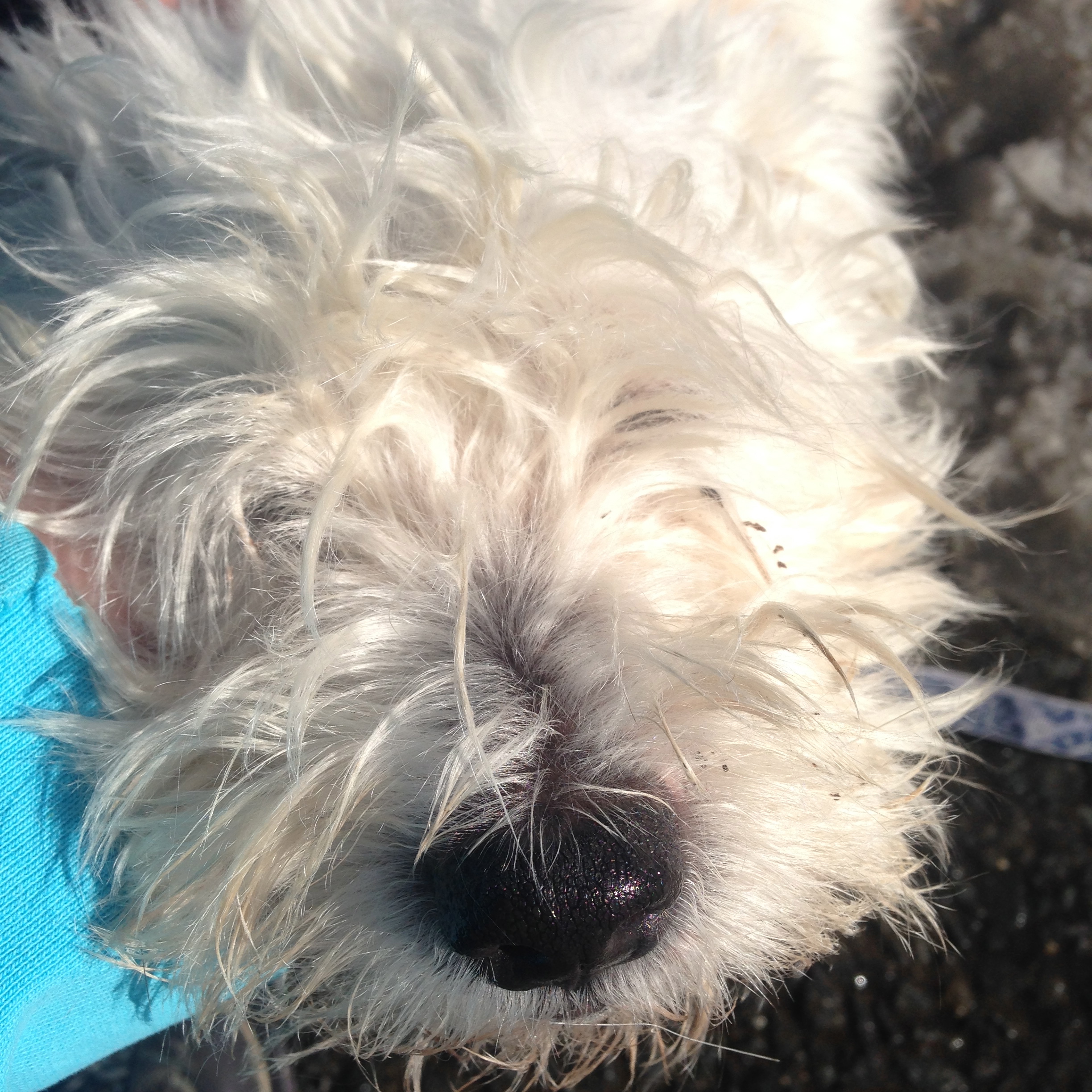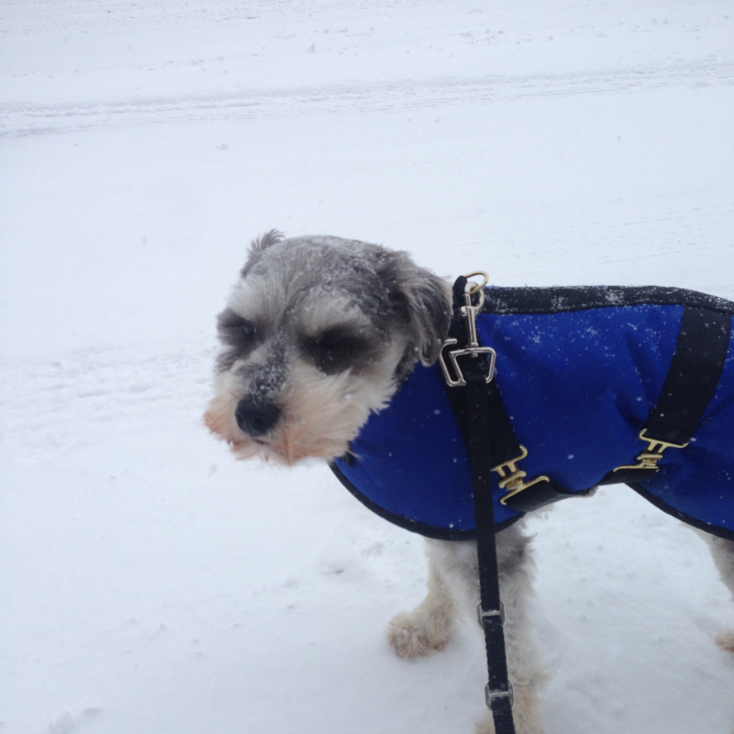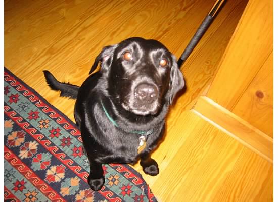 Once upon a time, in a little town called Nottingham, two very cute schnauzies made more very cute schnauzies. Their names were Fonz and Shirley. Not too far away, in a section of Boston, called Southie lived a human and her sister. The human was named Jamie and she had always loved herself a dog. Her dad, who lived not to far, had a most fabulous black lab named Smudgey, but Jamie wanted a pup of her own. Actually she wanted to want a pup. The jury is still out regarding whether or not she actually wanted one. One day, just before Thanksgiving, Jamie’s sister got it in her head that she wanted a schnauzer. But she wanted the schnauzer to be Jamie’s schnauzer because she wasn’t sure she wanted to commit. Jamie’s sister was the boss of Jamie. She still kind of is, to be perfectly honest. Jamie’s sister orchestrated a puppy search with Jamie, Moe and their dad. And Smudge. She went everywhere with her daddy. In case you are wondering what Smudge looked like here she is: