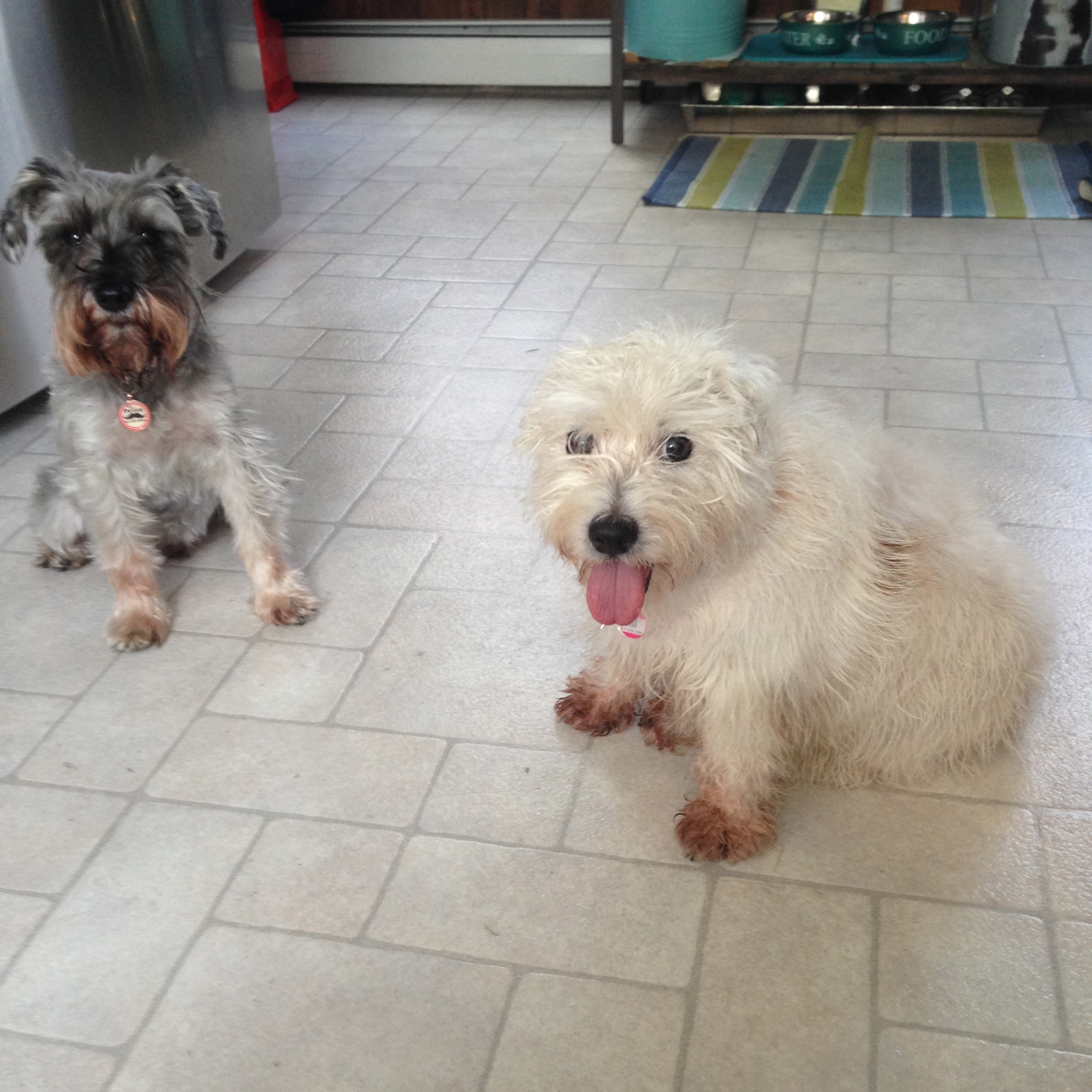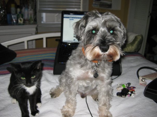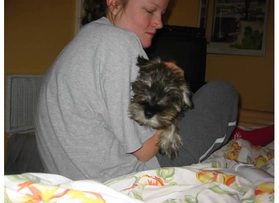 ANYWAY back to the story of me, not Smudge, but maybe I’ll have to tell that one day. So Jamie, Lindsay (mom’s sister/roommate), Melissa (Moe, Pawblo, etc), Smudge and their dad all piled into the car to follow leads that Lindsay had found on the classifieds for Schnauzer puppies. First the went ALL the way down to almost the cape and found a horrendous place that mom doesn’t like to think about. It was pretty much a puppy mill type place and no one could stomach getting a puppy there. So they followed their next lead ALL the way up to New Hampshire. Nottingham is a small town not far from where mom went to get her undergraduate degree. The place where I was born was a small house full of kids and puppies. The owner of Shirley and Fonz was a married mom of four who was also a nurse. She was caring and willing to see mom and her family late in the evening.